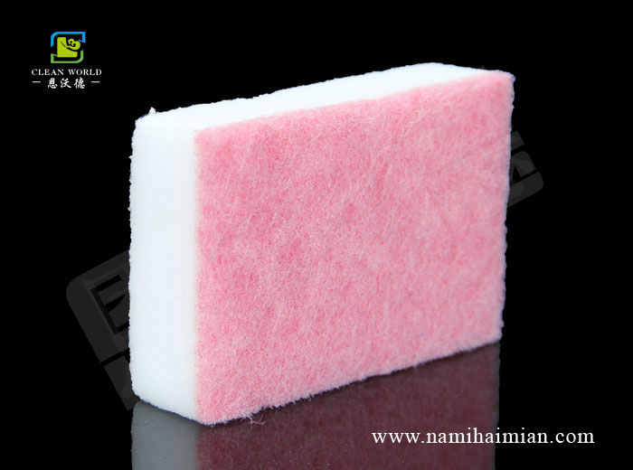 復合納米清潔海綿兩種材料的拼接使得其在更耐磨,更耐用,不掉渣,不沾油的同時可以達到雙面的清潔效果(復合百潔面:適合清潔頑固性污漬;清潔海綿面:適合清潔油污)。一面海綿的柔軟、另一面纖維的適中,二者合二為一,方便使用。